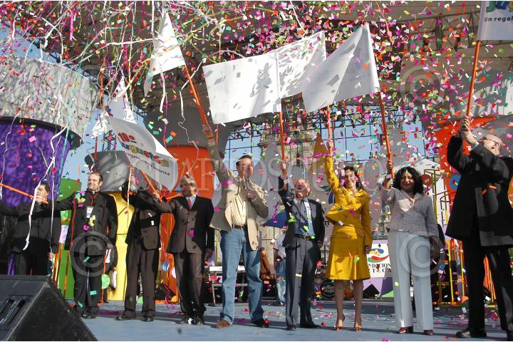 MEXICO D.F. 06ENERO2004.- José Ramón Fernández, Jorge Garralda y María Elena Medina encabezaron el banderazo de inicio del Décimo Juguetón que se realizó en el zócalo capitalino. FOTO: Germán Romero/CUARTOSCURO.COM