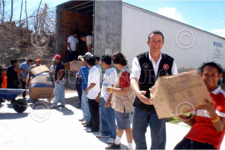 CANCUN, QUINTANA ROO 28OCTUBRE2005.- El conductor de la TV Azteca, Jorge Garralda encabezo la entrega de despensas y ropa a los habitantes damnificados por el huracan º Wilmaº. FOTO: TV Azteca/CUARTOSCURO.COM