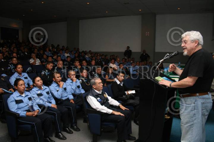 MÉXICO, D.F., 18MAYO2011.- El escritor Felipe Garrido compartió con elementos de la Policía Auxiliar diversas lecturas durante la conferencia "El buen lector", que se llevó a cabo como parte del Programa de Fomento a la Lectura que realizan en conjunto las secretarías de Cultura y Seguridad Pública del Gobierno del Distrito Federal. FOTO: ALEJANDRO BARRAGÁN/CUARTOSCURO.COM
