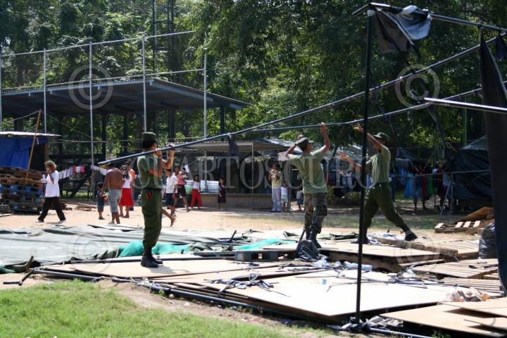 VILLAHERMOSA, TABASCO, 02MARZO2008.- Elementos del Ejercito Mexicano de la 30 Zona Militar realizan trabajos en hechuras de las carpas para los damnificados que se encuentran albergados por las pasadas contigencias por inundación. Estas acciones se llevan a cabo en el parque Recreativo de Atasta. FOTO: MARCO POLO GUZMÁN HERNÁNDEZ/CUARTOSCURO.COM