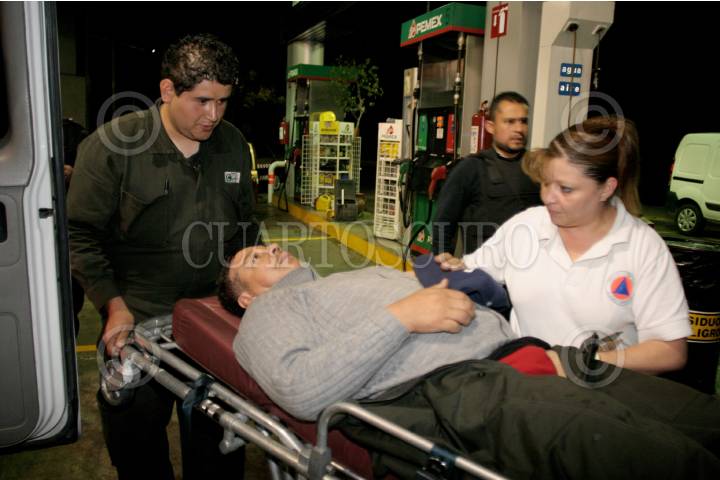 MÉXICO, D.F., 30SEPTIMBRE2009.- Gilberto de la Huerta Nochebuena de 50 años, despachador de gasolina, quien fue baleado en las piernas por un taxista inconforme con el servicio. Los hechos se registraron en la estación 0071 ubicada en la avenida Cuitlahuac y la calle de Egipto en la colonia Clavería de la delegación Azcapotzalco. FOTO: LUZ ACEVEDO/CUARTOCURO.COM