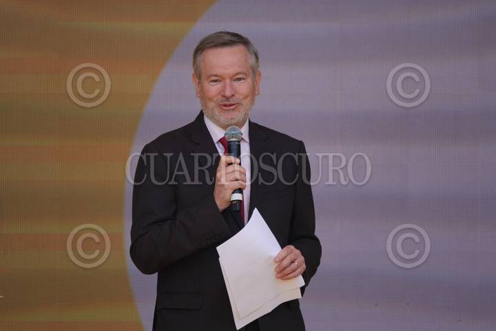 Peter Grohmann durante a presentación de la campaña nacional “De Frente a la Libertad” en la Cineteca Nacional.