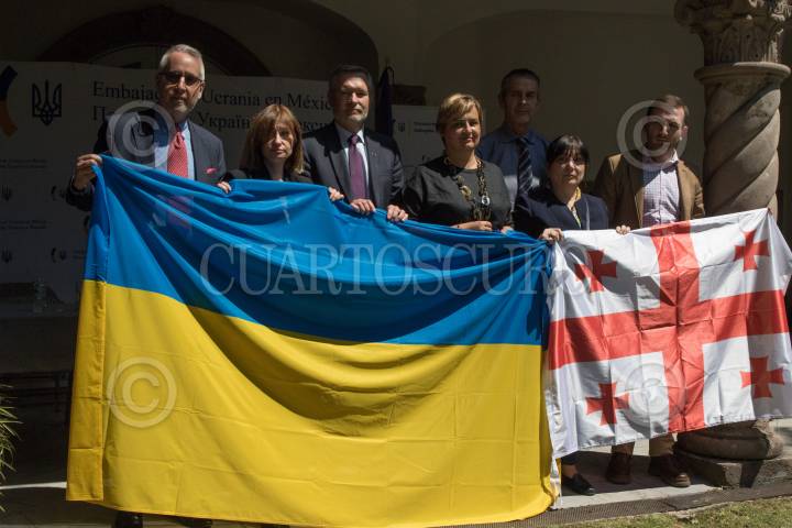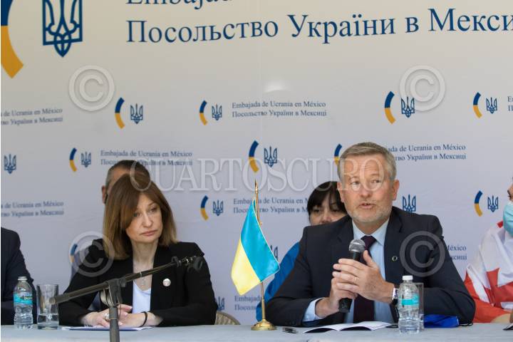 Oksana Dramaretska, embajadora de Ucrania en México, y Gautier Mignot, embajador de la Unión Europea en México, ofrecieron una conferencia de prensa en la que reprobaron la invasión militar de Rusia en contra de su vecino Ucrania.