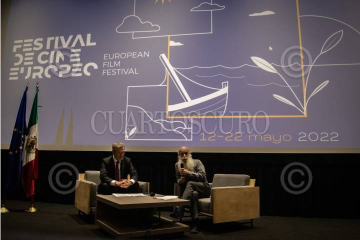 Gautier Mignot, embajador de la delegación de la Unión Europea y Nelson Carro, director de la programación y Difusión de la Cineteca Nacional durante conferencia de prensa para dar detalles del Festival de Cine Europeo que se llevara a cabo del 12 a 22 de mayo.