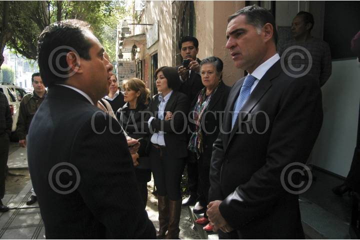 MÉXICO, D.F., 11ENERO2012.- Gabino Cue Monteagudo, Gobernador del Estado de Oaxaca acudió esta mañana a la representación de estado en Distrito Federal, donde fue recibido por Jorge Catillo Díaz, Representante del Gobierno de Oaxaca en el Distrito Federal y por personal de está dependencia. FOTO: GUILLERMO PEREA/CUARTOSCURO.COM