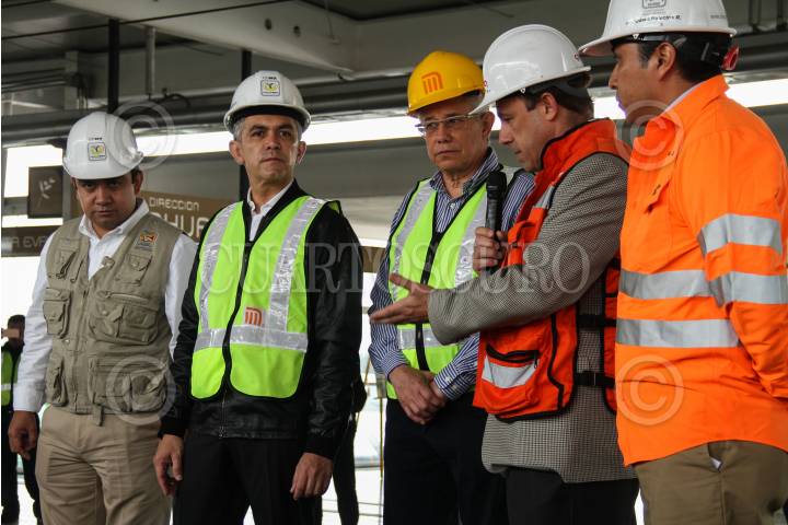 MÉXICO, D.F., 22JULIO2015.- Miguel Ángel Mancera y el nuevo director del Sistema de Transporte Colectivo (STC) Metro, Jorge Gaviño supervisan los trabajos de la rehabilitación de la Línea 12 del Metro, en la estación Olivos. El gobierno capitalino pretende que la obra este lista en noviembre de este año, a pesar de que las primeras pruebas se realizaran en el mes de agosto, ya que la obra se retraso debido a falta de piezas que se adquirieron a Alemania y no llegaron a tiempo. FOTO: ISABEL MATEOS /CUARTOSCURO.COM