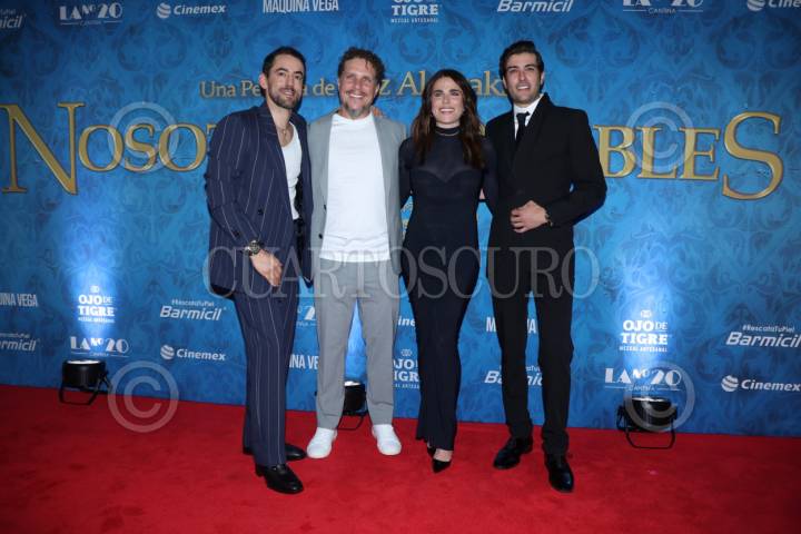 CIUDAD DE MÉXICO, 03ABRIL2024. Luis Gerardo Méndez, Gaz Alazraki, Karla Souza y Juan Pablo Gil a su paso por la alfombra roja de la celebración por el reestreno a 10 años de la película “Nosotros los Nobles”. FOTO: EDGAR NEGRETE LIRA/CUARTOSCURO.COM