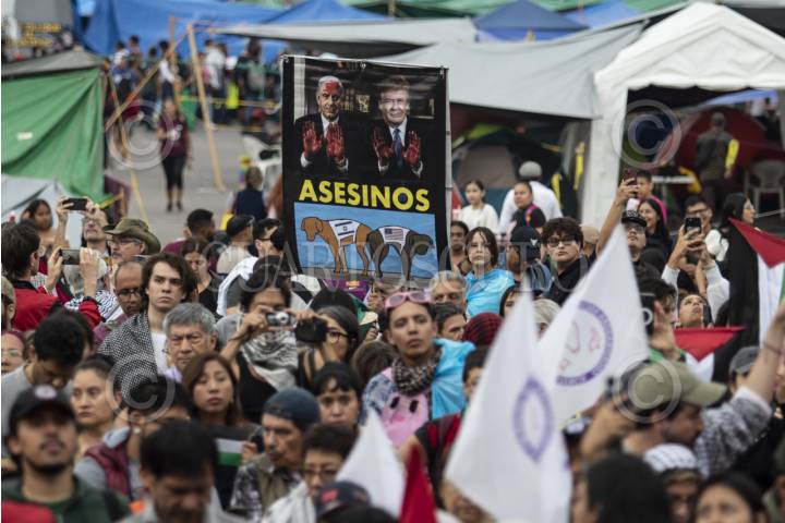 CIUDAD DE MÉXICO, 10AGOSTOO2025.- integrantes de la organización Amnistía Internacional marcharon sobre Paseo de la Reforma portando una manta con la leyenda "Alto al genocidio en Gaza" lo anterior como parte de las acciones internacionales en exigencia de un alto a fuego en el territorio palestino. FOTO: GALO CAÑAS/CUARTOSCURO.COM