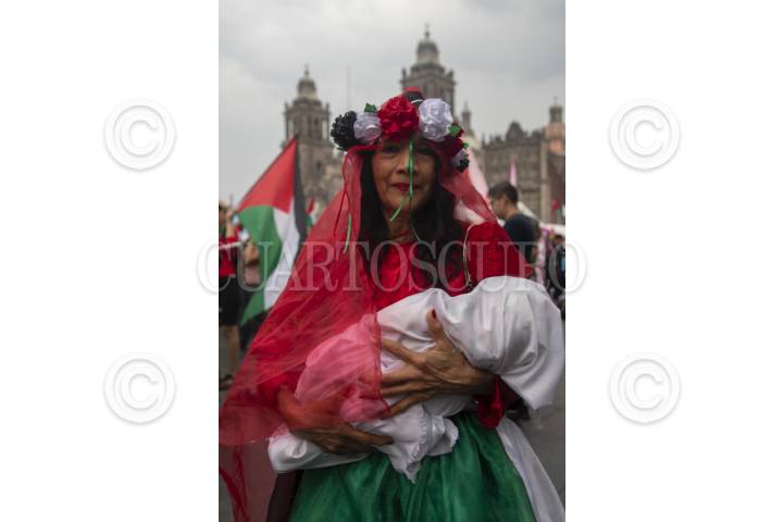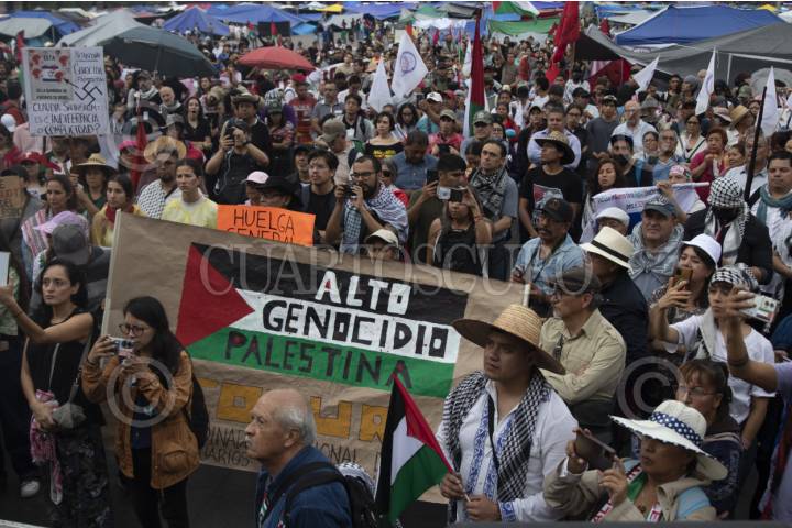 CIUDAD DE MÉXICO, 11JUNIO2025.- En el marco de la marcha global por Gaza, activistas marcharon de manera pacífica a las embajadas de España, Alemania, Francia y Países Bajos para exigir que rompan relaciones con Israel y que liberen a los 12 activistas y periodistas a bordo de la flotilla de la Libertad que buscaba llevar ayuda humanitaria a Gaza. FOTO: ANDREA MURCIA /CUARTOSCURO.COM