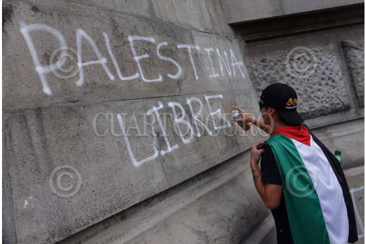 CIUDAD DE MÉXICO, 18MAYO2025.- Integrantes de la CNTE y activistas marcharon de manera pacifica desde el Ángel de la Independencia hasta la Plancha del Zócalo para ofrecer mitin y pedir al gobierno de México que se posicione a favor de que cese el fuego en Palestina. FOTO: ANDREA MURCIA /CUARTOSCURO.COM
