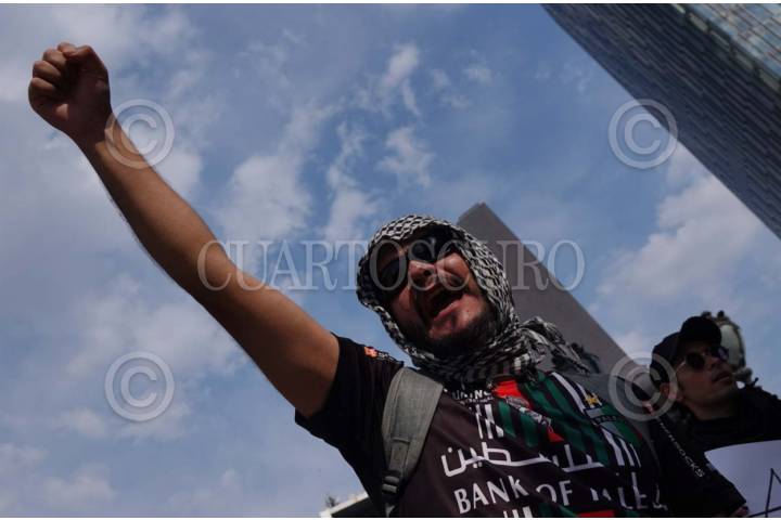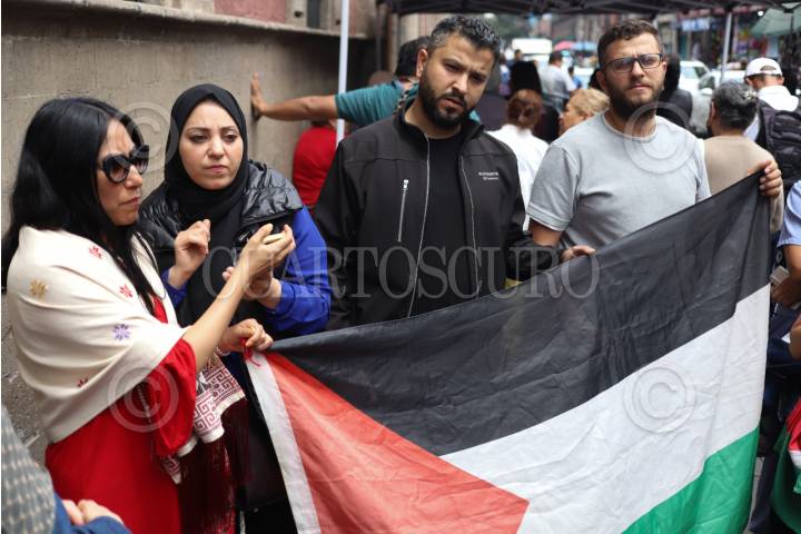 CIUDAD DE MÉXICO, 02SEPTIEMBRE2025.- Activistas pro Palestina acudieron a las oficinas de Atención Ciudadana de la Presidencia para presentar una solicitud de asilo, así como de ayuda médica y alimentaria para familias provenientes de Gaza. FOTO: DANIEL AUGUSTO/CUARTOSCURO.COM