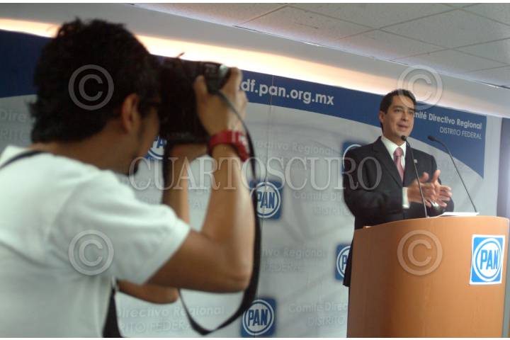 MEXICO, D.F. 03ENERO2005.- Carlos Gelista, presidente del PAN en el Distrito Federal, realizó una conferencia de prensa en las instalaciones del PAN DF. FOTO: Iván Stephens/CUARTOSCURO.COM