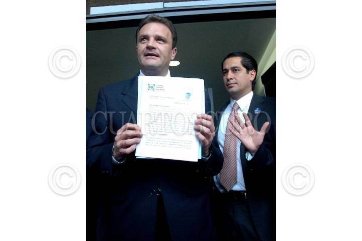 MÉXICO, DF, 29 ENERO 2006.- El secretario de Medio Ambiente y Recursos Naturales, Ing. José Luis Luege Tamargo, y el presidente del Partido Acción Nacional en el Distrito Federal, Carlos Gelista, durante las elecciones internas PAN para elegir candidatos a diputaciones senadurias. FOTO: Leonardo Casas/CUARTOSCURO.COM