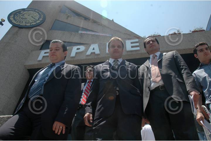 MÉXICO, D.F. 14JUNIO2006.- Los panistas Carlos Flores, José Espina y Carlos Gelista, presidente del Partido Acción Nacional (PAN) local, acudieron a la Fiscalía Especial Para la Atención de Delitos Electorales (FEPADE) a denunciar un presunto financiamiento ilícito de la campaña del candidato de la Coalición por el Bien de Todos a la presidencia de la República. FOTO: Iván Stephens/CUARTOSCURO.COM