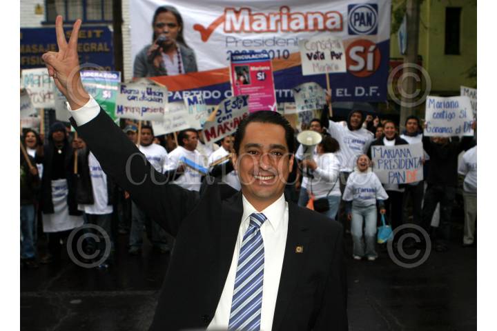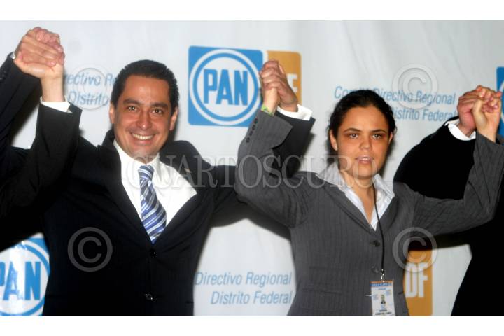 MEXICO DF. 27NERO2007.- Los candidatos Carlos Gelista candidato y Mariana Gómez en las instalaciones del PAN DF durante las votaciones para escoger al nuevo lider del partido blanquiazul en la capital FOTO: SAÚL LÓPEZCUARTOSCURO.COM
