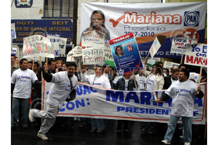 MEXICO DF. 27NERO2007.- Simpatizantes de los candidatos Carlos Gelista y Mariana Gómez a las afueras de las instalaciones del PAN DF durante las votaciones para escoger al nuevo lider del partido blanquiazul en la capital FOTO: SAÚL LÓPEZCUARTOSCURO.COM