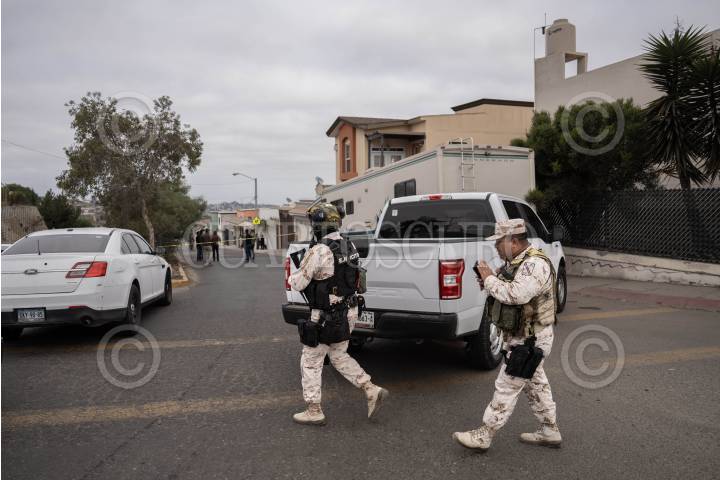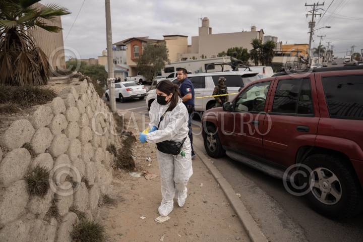 TIJUANA, BAJA CALIFORNIA, 14OCTUBRE2024.- Un ataque armado dejó el saldo de un hombre sin vida; se trata del subcomandante operativo de la Agencia Estatal de Investigación de la Fiscalia General del Estado en el municipio de Tecate. Los hechos se registraron la a mañana de este lunes 14 de octubre sobre la avenida Loma Bonita del fraccionamiento Loma Bonita, cuando el agente identificado como Gerardo Gonzalez Zamorano, salía de su casa, donde se encontraba su familia. De acuerdo a información extraoficial, los responsables apelaron a la fuga a bordo de un vehículo tipo Volkswagen color rojo en dirección hacia el Cañon Reforma, por lo que autoridades desplegaron un operativo para dar con los agresores. El lugar, que está ubicado a un costado de la escuela preparatoria Cobach siglo XXI, quedó altamente resguardado por parte de agentes de la Fiscalía General del Estado, Ejército Mexicano y Policía Municipal. Con más de 16 años de servicio en la agencia, Gerardo Gonzalez, fue ascendido a subcomandante en el municipio de Tecate, luego de haber estado laborando por varios años en la Fiscalía de Homicidios Dolosos en Tijuana. FOTO: OMAR MARTÍNEZ /CUARTOSCURO.COM