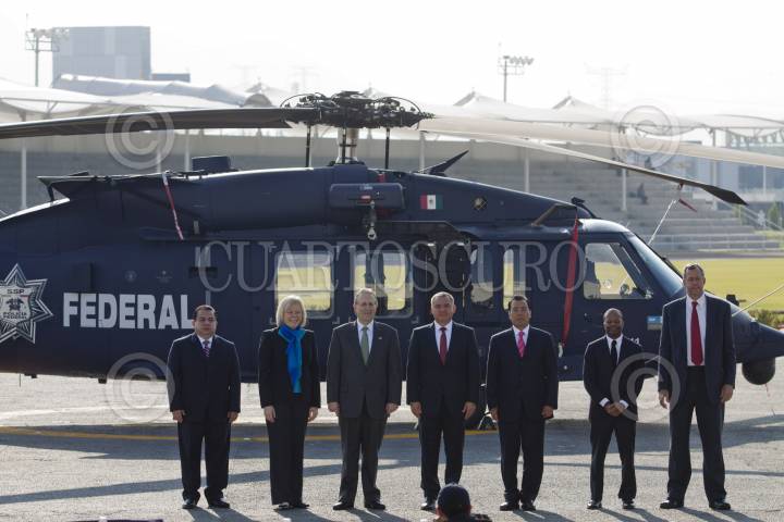MÉXICO, D.F., 08DICIEMBRE2011.- El gobierno estadunidense entregó un helicóptero tipo UH-60M Black Hawk a la Secretaria de Seguridad Federal, en el marco del Plan de Cooperación Mérida. Esta aeronave servirá para el combate al crimen organizado y se recibió en el Centro de Alto mando de la Policía Federal. FOTO: MOISÉS PABLO/CUARTOSCURO.COM