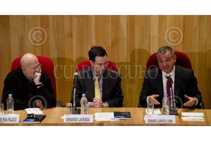 MÉXICO, D.F.,08DICIEMBRE2011.- Raymundo Riva Palacio, Gerardo Laveaga, acompañaron a Genaro García Luna, secretario de Seguridad Pública, quien presentó esta noche su libro: "El Nuevo Modelo de Seguridad para México", editado por editorial Nostra, que se realizó ante la presencia de decenas de personas en el Instituto Nacional de Ciencias Penales (Inacipe). FOTO: MISAEL VALTIERRA/CUARTOSCURO.COM