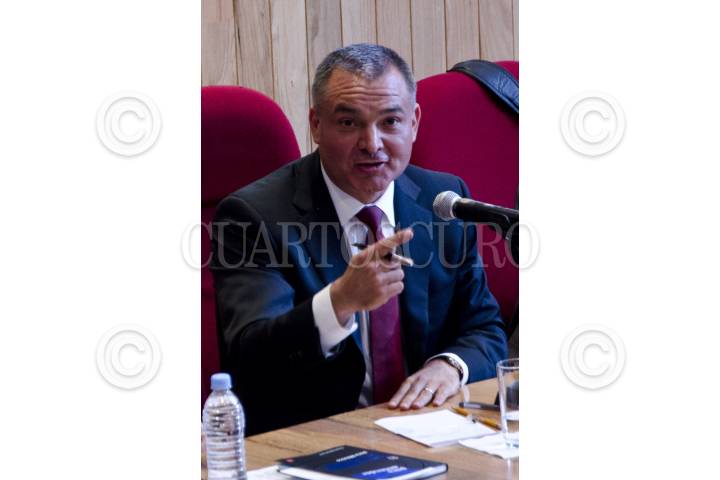 MÉXICO, D.F.,08DICIEMBRE2011.- Raymundo Riva Palacio, Gerardo Laveaga, Antonio Mazzitelli y Leonardo Curzio, acompañaron a Genaro García Luna (centro), secretario de Seguridad Pública, quien presentó esta noche su libro: "El Nuevo Modelo de Seguridad para México", editado por editorial Nostra, que se realizó ante la presencia de decenas de personas en el Instituto Nacional de Ciencias Penales (Inacipe). FOTO: MISAEL VALTIERRA/CUARTOSCURO.COM