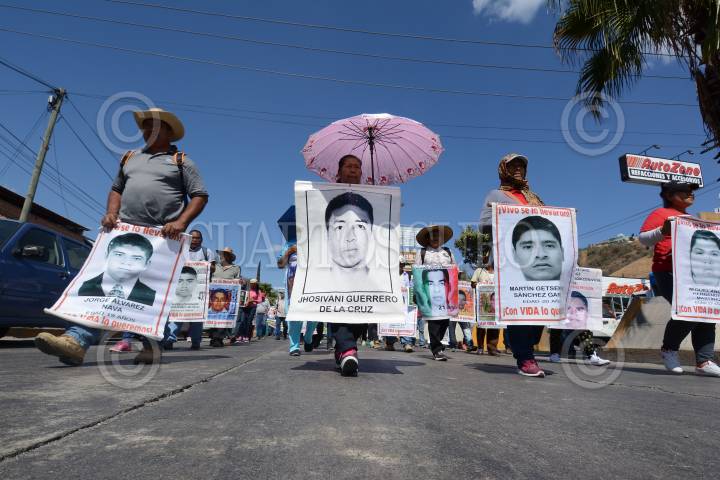 CHILPANCINGO, GUERRERO, 02FEBRERO2017.- Padres de los 43 estudiantes de Ayotzinapa desaparecidos en Iguala, marcharon para conmemorar el aniversario luctuoso del profesor Genaro Vázquez Rojas y para exigir la libertad de policías comunitarios de la Coordinadora Regional de Autoridades Comunitarias (CRAC). FOTO: JOSÉ I. HERNÁNDEZ / CUARTOSCURO.COM