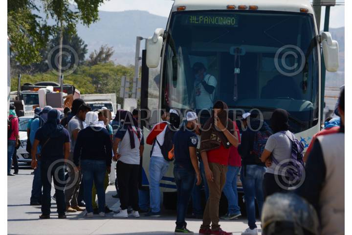 CHILPANCINGO, GUERRERO, 02FEBRERO2012.- En el marco del 40 aniversario luctuoso del comandante guerrillero Génaro Vázquez Rojas, alumnos de la normal rural de Ayotzinapa acompañados de integrantes de la Federacion de Estudiantes Campesinos Socialistas de Mexico (FECSM), asi como de integrantes de organizaciones sociales, realizaron una marcha por las principales calles y avenidas de la capital. Ellos exigen juicio político en contra del gobernador del estado Ángel Aguirre Rivero por los sucesos violentos del 12 de diciembre pasado, donde perdieron la vida dos estudiantes normalistas, cuando participaban en un bloqueo en la Autopista del Sol y fueron desalojados por policías ministeriales y Policía Federal. FOTO: OSCAR ALVARADO/CUARTOSCURO.COM