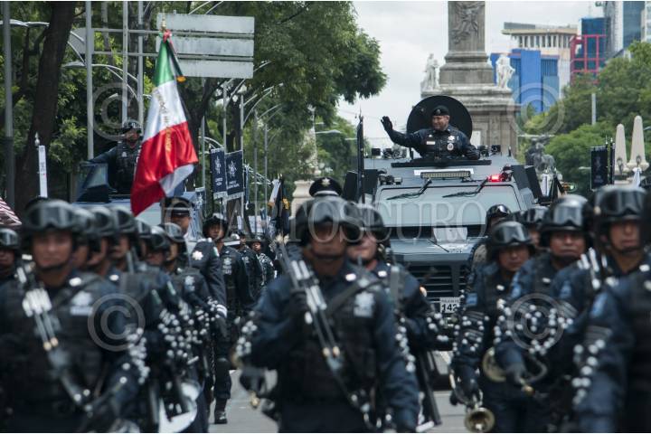 MÉXICO, D.F., 16SEPTIEMBRE2014.- Elementos de la Gendarmería Nacional y Policía Federal marchan sobre Paseo de la Reforma para conmemorar el 2014 aniversario del inicio de la guerra de Independencia. FOTO: DIEGO SIMÓN SÁNCHEZ /CUARTOSCURO.COM