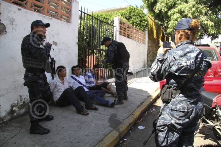 ACAPULCO, GUERRERO, 29ENERO2015.- Tres hombres jóvenes de nombres José Abraham Reyes, Arturo Castro Estrada y Efrén Flores Cruz, de aproximadamente 20 a 22 años, fueron detenidos por los elementos de la Policía Federal de la División de Gendarmería, aparentemente por un delito del fuero común, asegurándoseles un vehículo marca Nissan tipo Tsuru de color azul y blanco placas de circulación 17-31-FTB del servicio público. Los hoy detenidos, fueron puestos ante el ministerio público de asuntos especiales ya que se les relaciona por el delito de tentativa de robo de vehículo con violencia FOTO: BERNANDINO HERNÁNDEZ /CUARTOSCURO.COM