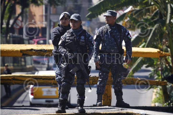 MÉXICO, D.F., 12ENERO2015.- Decenas de policías de la Secretaría de Seguridad Pública capitalina y elementos de la Gendarmería Nacional vigilan las inmediaciones del aeropuerto y el boulevard puerto aéreo, donde se espera que pase el Papa Francisco, durante su recorrido con rumbo a la Nunciatura Apostólica. Se esperan cortes a la circulación sobre circuito interior y las avenidas que lo cruzan aproximadamente a las cuatro de la tarde. FOTO: DIEGO SIMÓN SÁNCHEZ /CUARTOSCURO.COM