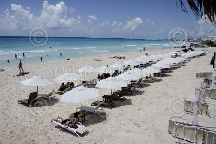 CANCÚN, QUINTANA ROO, 28JULIO2016.- Turistas nacionales y extranjeros disfrutan de un día de sol y playa, mientras elementos de la gendarmería realizan recorridos para mantener la seguridad de los visitantes. FOTO: ELIZABETH RUIZ /CUARTOSCURO.COM