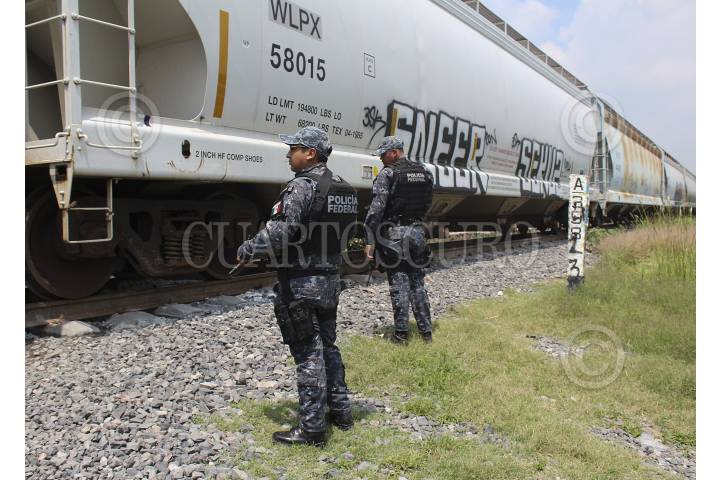 LEÓN, GUANAJUATO, 11AGOSTO2016.- Elementos de la Gendarmería Nacional custodian desde ayer las vías del tren en las comunidades cercanas a la empresa de Maseca, donde los últimos días hubo robos al cargamento de maíz. FOTO: LUIS RAMÍREZ /CUARTOSCURO.COM