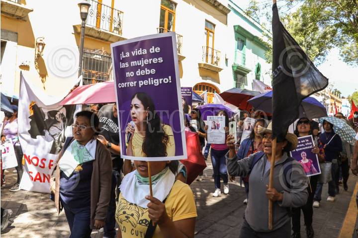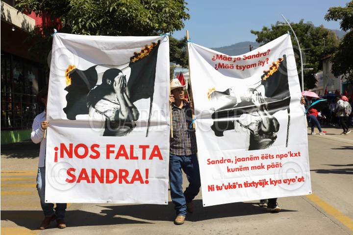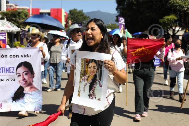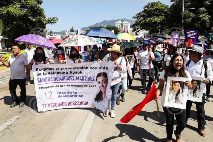 OAXACA, OAXACA, 16OCTUBRE2024.- Esté día, familiares de Sandra Estefana Domínguez Martínez, acompañados de defensores de derechos humanos e integrantes de organizaciones, marcharon en la capital de Oaxaca para exigir la presentación con vida de la abogada y activista, desaparecida desde el 4 de octubre junto con sus esposo, Alexander Hernández, en María Lombardo de Caso, San Juan Cotzocón. A doce días de su desaparición, los manifestantes exigieron una reunión con el gobernador Salomón Jara Cruz y la presidenta Claudia Sheinbaum Pardo, a quienes dirigieron una solicitud desde el pasado 11 de octubre. FOTO: CAROLINA JIMÉNEZ/CUARTOSCURO.COM