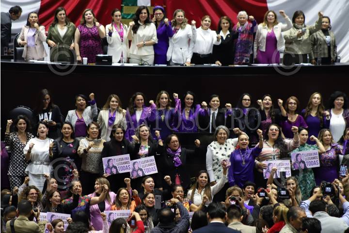CIUDAD DE MÉXICO, 05NOVIEMBRE2024.- Las distintas diputadas de todos los grupos parlamentarios se subieron a la tribuna para tomarse una fotografía y festejar la aprobación de la Reforma de Igualdad. FOTO: DANIEL AUGUSTO/ CUARTOSCURO.COM