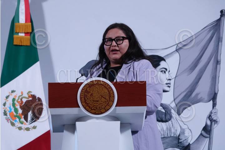 CIUDAD DE MÉXICO, 07MARZO2025.- Ctitlalli Hernández, secretaria de Mujeres, durante la conferencia “Mañanera del Pueblo” en la que presentó la Cartilla de Derechos de las Mujeres que serán entregadas a lo largo de la República para que todas conozcan sus derechos y los exijan. FOTO: GALO CAÑAS/CUARTOSCURO.COM