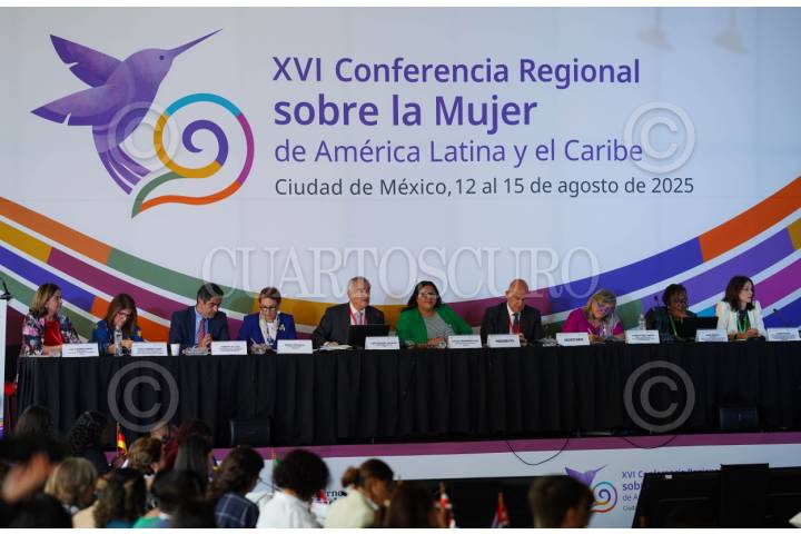 CIUDAD DE MÉXICO, 13AGOSTO2025.- Aspectos de la instalación de la XVI Conferencia Regional Sobre la Mujer de América Latina y el Caribe que se desarrolla en el Centro Cultural Universitario de Tlatelolco para generar espacios de discusión y compromisos en América Latina en virtud del sistema de cuidados. FOTO: GALO CAÑAS/CUARTOSCURO.COM