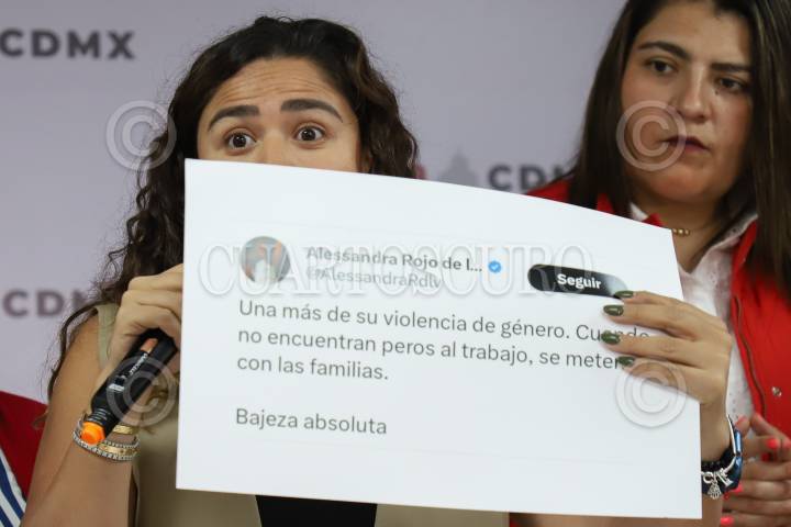 CIUDAD DE MÉXICO, 10SEPTIEMBRE2024.- Caty Monreal, ex candidata de Morena a la alcaldía Cuauhtémoc, muestra un tuit de Alessandra Rojo de la Vega, dónde denuncia un ataque de violencia política de género. FOTO: DANIEL AUGUSTO/ CUARTOSCURO.COM