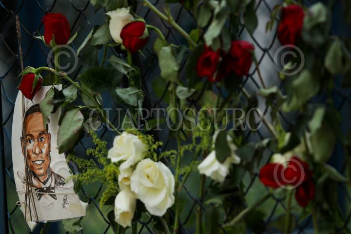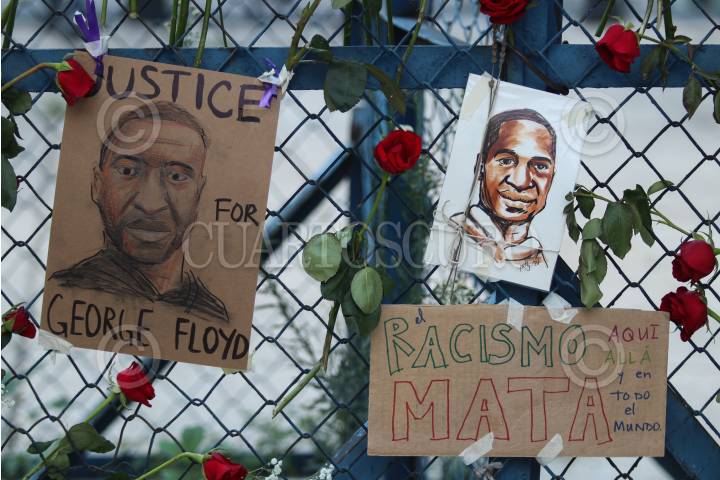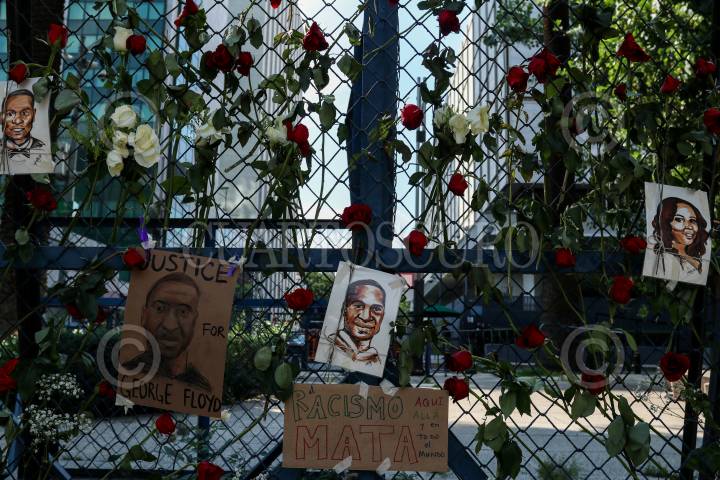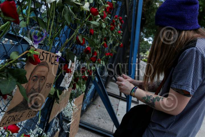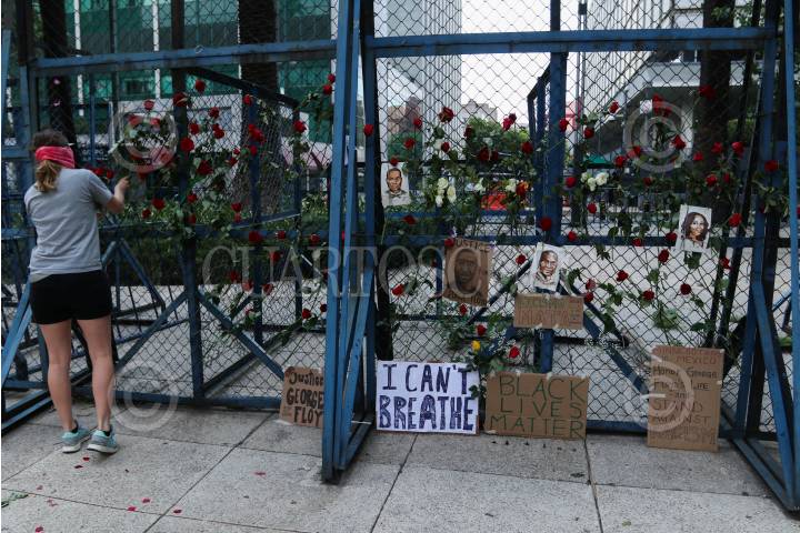 Altar instalado en la embajada de Estados Unidos en memoria de George Floys, ciudadano afroamericano asesinado durante una detención policial.