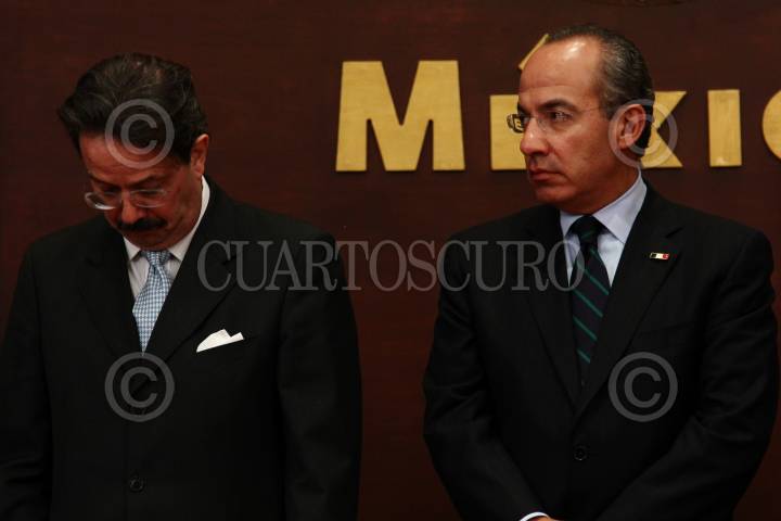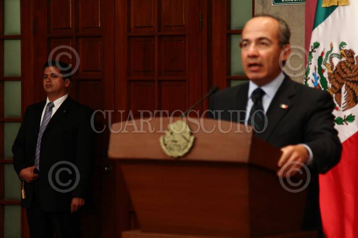 MÉXICO, D.F., 07ENERO2011.- Felipe Calderón Hinojosa, Presidnte de México, en un mensaje a los medios de comunicación, anunció cambios en parte de su gabinete. El titular de la SCT, Juan Molinar Horcasitas, fue sustituido por Dionisio Pérez Jácome, anterior subsecretario de Hacienda, mientras que la titular de Energía, Georgina Kessel, fue designada nueva directora de Banobras. Felipe Bravo Mena, ex secretario particular de la oficina de la presidencia fue sustituído por Roberto Gil Zuarth. FOTO: MISAEL VALTIERRA/CUARTOSCURO.COM