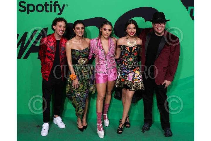 Luisito Comunica, Aislinn Derbez, Danna Paola, Ángela Aguilar y Franco Escamilla, durante la alfombra verde de los Spotify Awards en donde se premiará a más de 50 nominados, esto en el Auditorio.