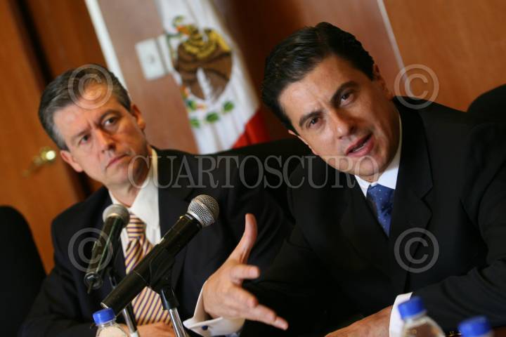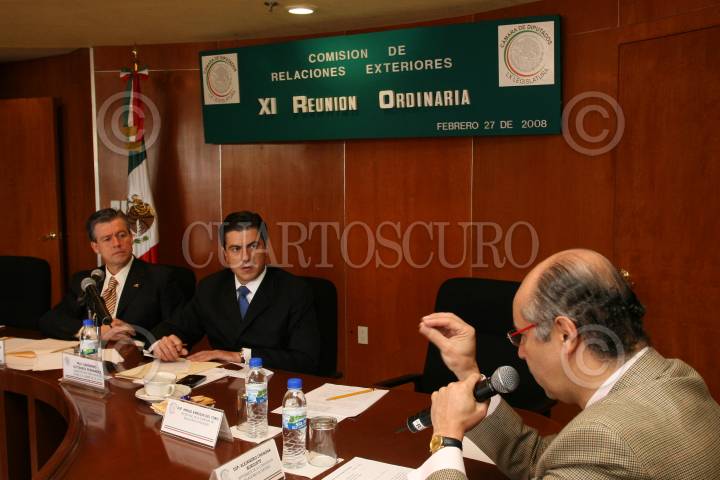 MÉXICO D.F. 27FEBRERO2008.-Gerónimo Gutiérrez Fenández, Subscretario para América Latina y el Caribe de la Secretaría de Relaciones Exteriores acudio a la Cámara de Diputados a la reunión de trabajo con la comisión de esta cámara.En la imagen es acompañado por el diputado Gerado Buganza. FOTO: GUILLERMO PEREA/CUARTOSCURO.COM