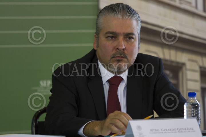 MÉXICO, D.F., 11AGOSTO2015.- El coordinador de Prepa en Línea-SEP, Gerardo González, encabezó la conferencia de prensa en la cual hablaron acerca del Servicio Nacional de Bachillerato en Línea (Prepa en Línea-SEP). FOTO: MOISÉS PABLO /CUARTOSCURO.COM
