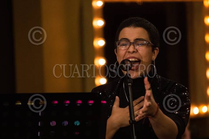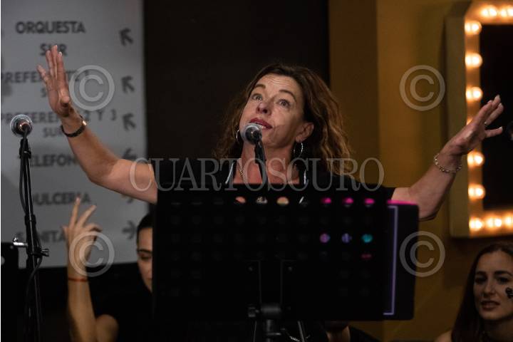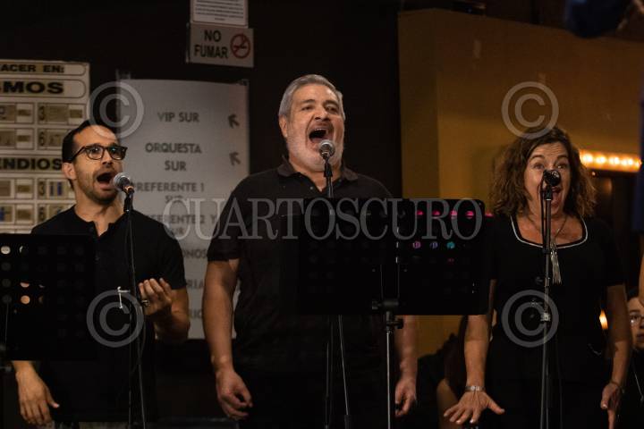 Gerardo González, Marien Caballero Galvé, Anahí Allué, y Guana durante el ensayo del musical "The Prom", en el Centro Cultural Teatro 1.
