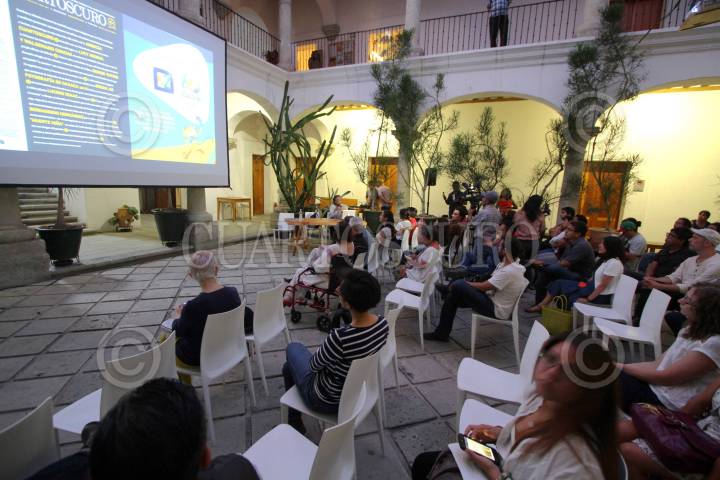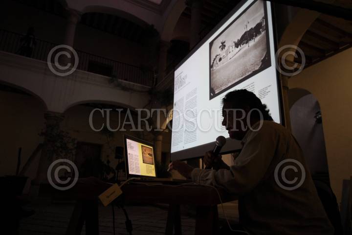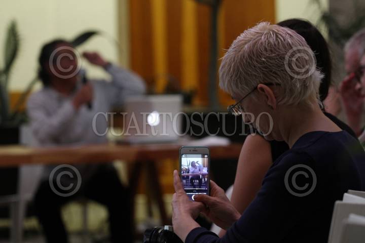 OAXACA, OAXACA, 04AGOSTO2016.- Como parte del Encuentro Internacional de Fotografía FotOax 2016, este jueves se presentó en la Casa de la Ciudad la edición 139 de la revista Cuartoscuro, la cual corrió a cargo de su director, Pedro Valtierra. El fotoperiodista habló del trabajo que se ha realizado en la revista al abrir espacios a los fotógrafos nacionales. También, se presentaron las revistas Alquimia y Bimestral. Al término, se inauguró la exposición "Monstruo" de Gerardo Montiel Klint. FOTO: ARTURO PÉREZ ALFONSO /CUARTOSCURO.COM