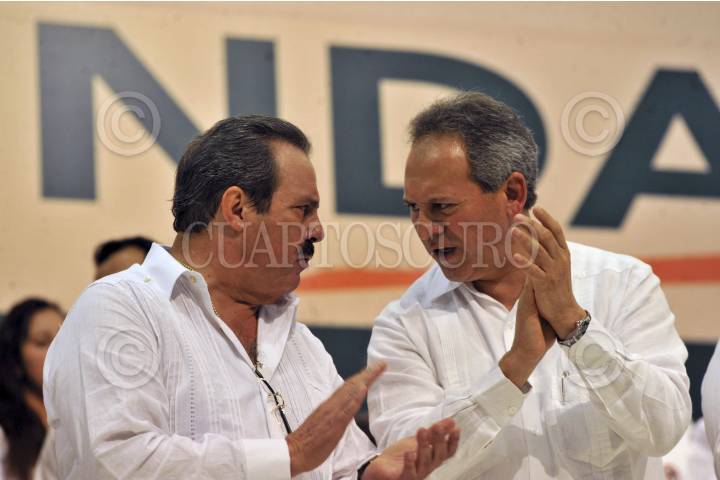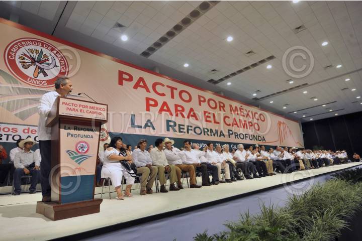 CIUDAD VICTORIA, TAMAULIPAS, 28AGOSTO2013.- Gerardo Sánchez García, presidente de la Confederación Nacional Campesina (CNC) y Enrique Martínez Martínez, secretario de Agricultura, durante la clausura de las mesas de trabajo del congreso extraordinario de la Confederación Nacional Campesina "Pacto por México para el Campo. La Reforma Profunda". FOTO: CUARTOSCURO.COM