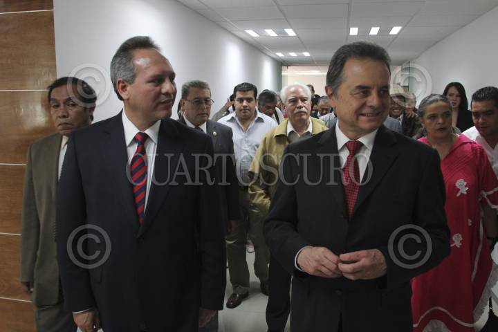 MÉXICO, D.F., 24ABRIL2012.- Gerardo Sánchez García, secretario general de la CNC, Pedro Joaquín Coldwell y Beatriz Paredes Rángel a su llegada a la Inauguración de la Sala de usos Múltiples Emiliano Zapata de la CNC. FOTO: SAÚL LÓPEZ /CUARTOSCURO.COM