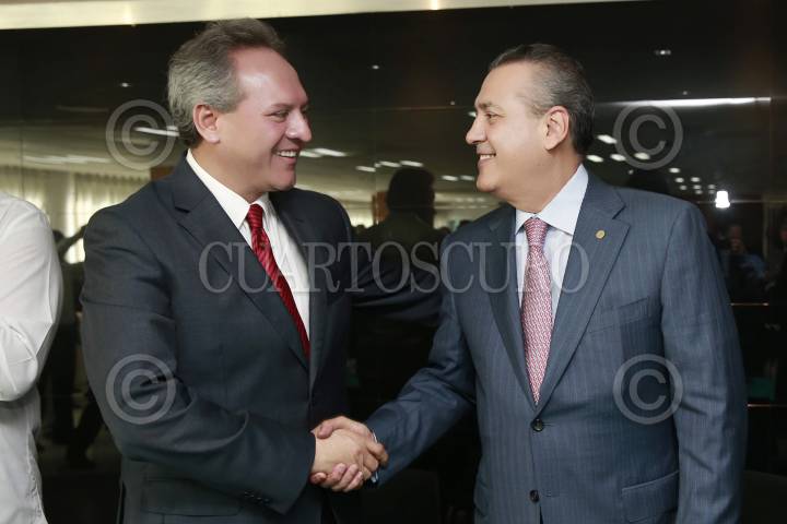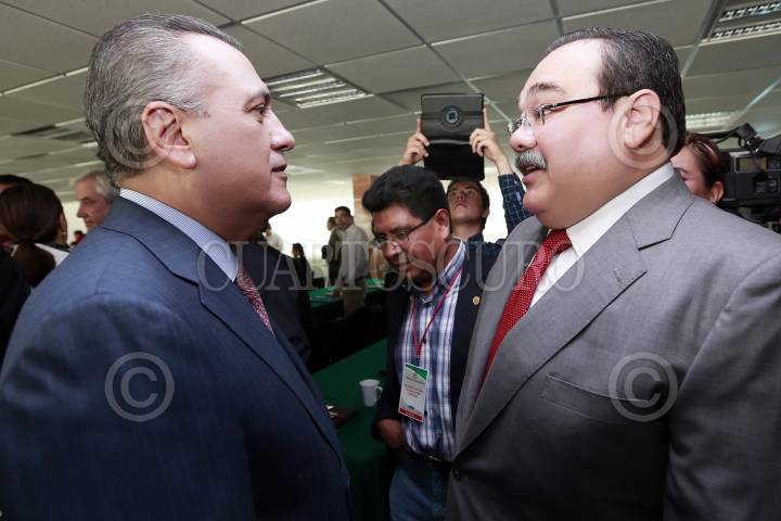 MÉXICO, D.F., 11SEPTIEMBRE2012.- El líder de la bancada del PRI en el Senado, Emilio Gamboa Patrón y el lìder del la Confederación Nacional Campesina, Gerardo Sánchez, ofrecieron una conferencia de prensa con motivo de los cambios que sufrirá el Instituto de Acceso a la Información y la creación de la comisión anticorrupción que el presidente electo, Enrique PEña Nieto propuso ne dñias recientes. FOTO: FRANCISCO RODRÍGUEZ /CUARTOSCURO.COM