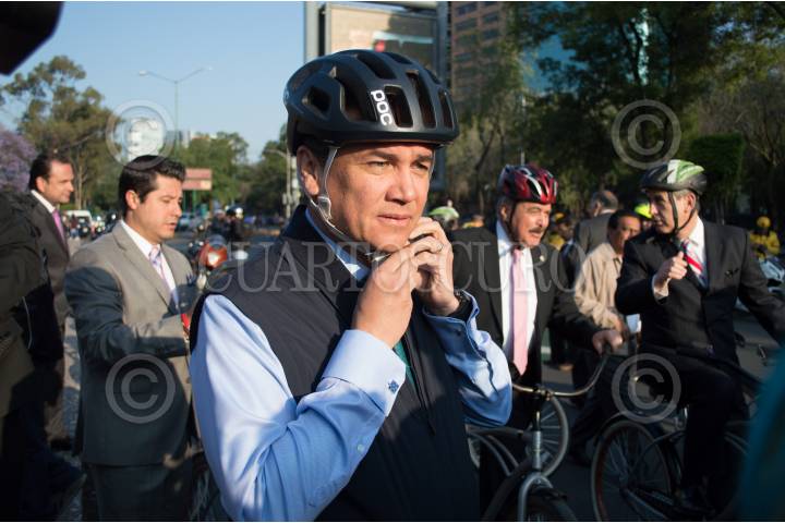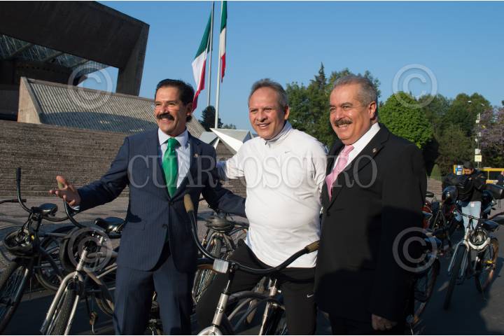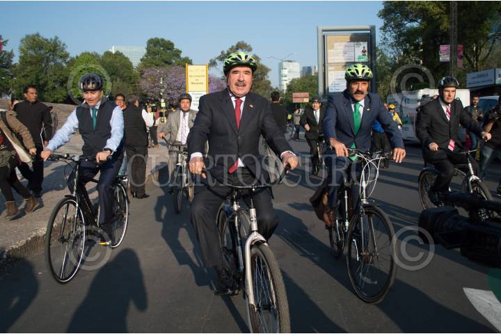 CIUDAD DE MÉXICO, 20ABRIL2017.- Los senadores Carlos Alberto Puente, Emilio Gamboa y Jesús Casillas encabezaron una rodada ciclista con motivo de los 200 años de la invención del medio de transporte. Los parlamentarios partieron del Auditorio Nacional rumbo a las instalaciones del Senado de la República. FOTO: SELENE PACHECO /CUARTOSCURO.COM