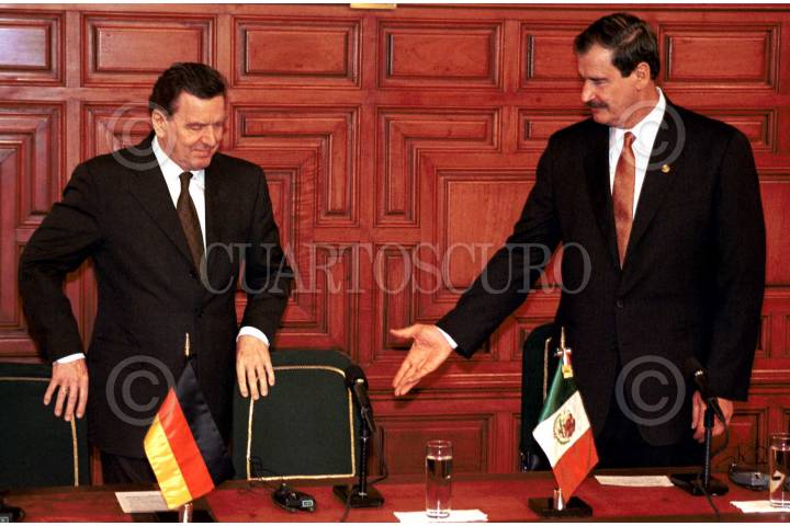 El Presidente Vicente Fox recibió en Palacio Nacional al Canciller Federal de la República de Alemania, Gerard Schroeder. FOTO: Christian Palma/CUARTOSCURO.COM