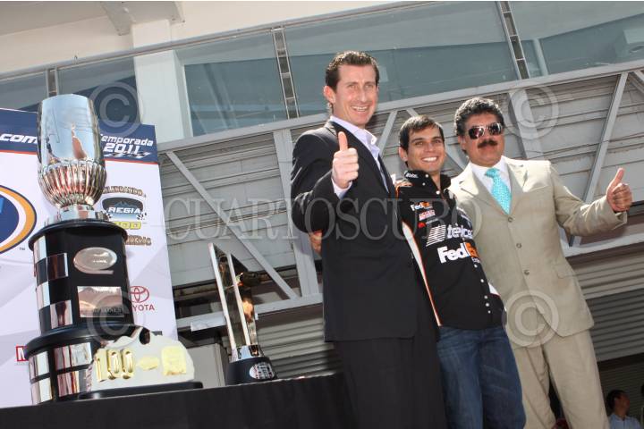 MÉXICO, D.F., 08MARZO2011.- Federico Alaman, director de Nascar Corona series; el piloto German Quiroga durante la presentación de la temporada 2011 de la Nascar Corona Series que se realizará en 7 ciudades con 14 fechas, arrancando en la ciudad de Monterrey y terminando con la gran final en la Ciudad de México. FOTO: RODOLFO ANGULO/CUARTOSCURO.COM