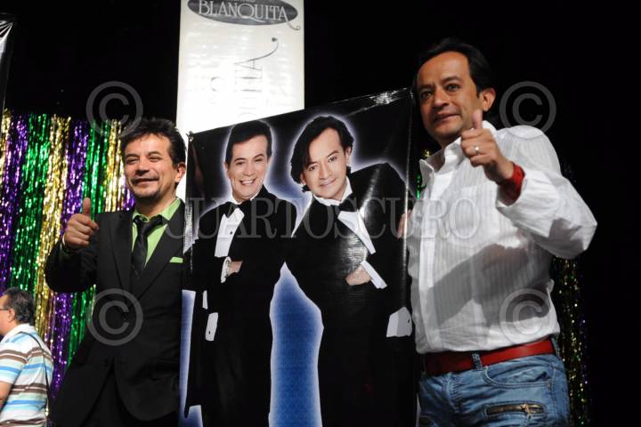 MÉXICO, D.F., 14JUNIO2011.-Los hermanos, Germán y Freddy Ortega al finalizar la conferencia de prensa donde se anunciaron las fechas del 17 18 y 19 de Junio para el "Bicentenorio Cómico" en el Teatro Blanquita. FOTO: FRANCISCO RODRÍGUEZ/CUARTOSCURO.COM